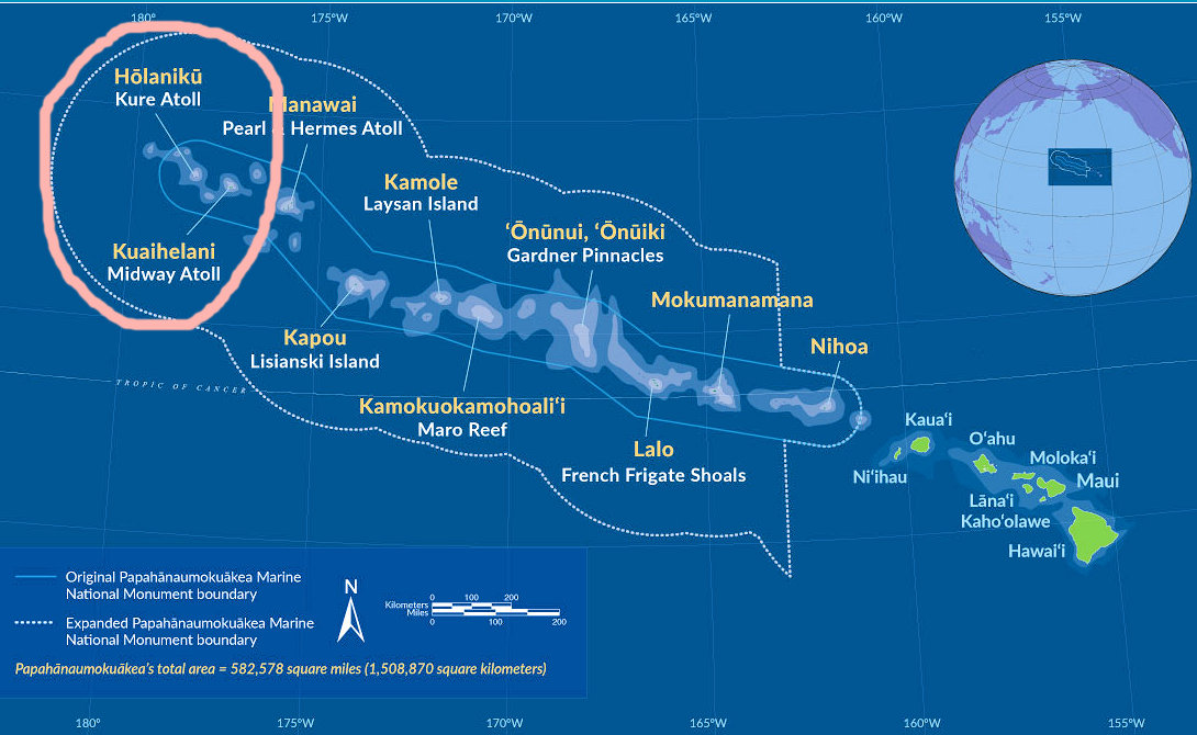 Midway and Kure Islands have been placed on the list of DXCC deleted entities, effective August 26, 2016. This came about as an unintended consequence of action last summer by then-President Barack Obama that expanded the Papahānaumokuākea Marine National Monument to include the northwestern Hawaiian Islands west of Ni’ihau Island, making it the largest contiguous protected conservation area under the US flag.