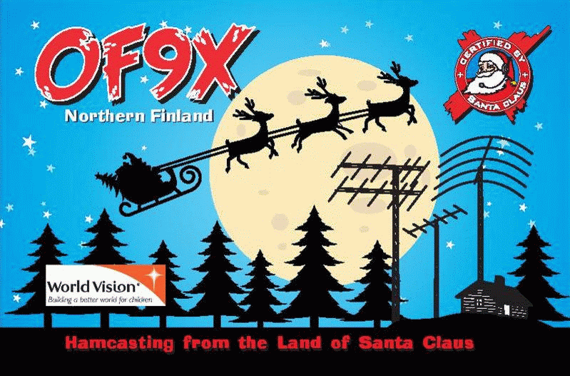 Starting on Friday, December 16, at 1900 UTC, Santa will call “Ho-ho!” on 20 meters to North American children (listen for OF9X between 14.200 and 14.240 MHz; Santa’s not sure exactly, as the VFO dial may get frosty). These operations will be streamed, with incoming signals played back at all times. Tell Santa that you see him, and he will wave to you personally. You can also connect on your mobile device.