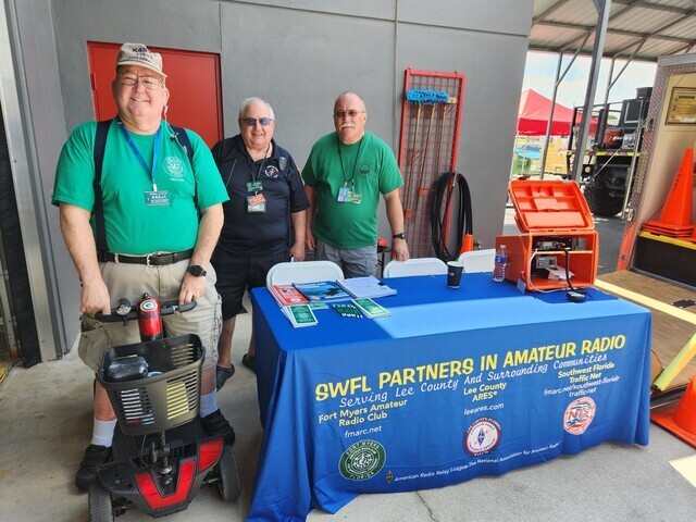 NTS at Florida CERT picnic. Pictured left to right: Steve Clayton, K4SJC, FMARC Past President & LeeARES member; Carmine Vetrano, K1CJV, FMARC President, Lee ARES member & SWFTN net control station, and Ron Hendershot, KA8FTP, FMARC & LeeARES member. | | | |
